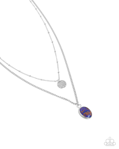 A shiny silver disc, hammered in rippling texture, slides along a silver satellite chain in a dizzying display, while a purple-and-brown marbled stone set in an abstract silver oval pendant, layers below it, cascading along the neckline for an elegantly earthy finish. Features an adjustable clasp closure. As the stone elements in this piece are natural, some color variation is normal.
