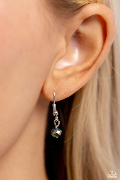 Infused along an invisible string, a collection of faceted oil spill beads alternate with clear beads to create a dazzling display below the neckline. An airy oil spill heart dangles from the high-sheen display for a touch of charm. Features an adjustable clasp closure.