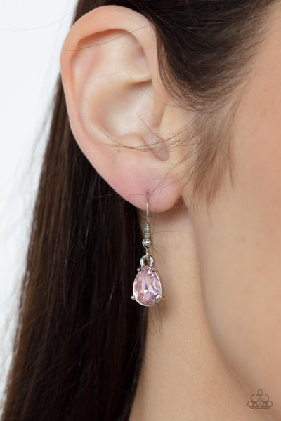 Cascading series of sparkly pink teardrop rhinestones delicately link into a chain of graduating teardrops, resulting in an elegant extended pendant below the collar. Features an adjustable clasp closure.