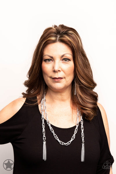 A single strand of spiraling, interlocking links with light-catching texture is anchored by two tassels of chain that add dramatic length to the piece. Undeniably the most versatile piece in Paparazzi's history, the scarf necklace features FIVE different ways to accessorize: Open Layer, Loop, Traditional Wrap, Double Knot, and Nautical Knot.