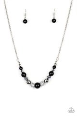 A collection of polished black, classic silver, and crystal-like hematite beads are threaded along an invisible wire below the collar for a glamorous look. Features an adjustable clasp closure.