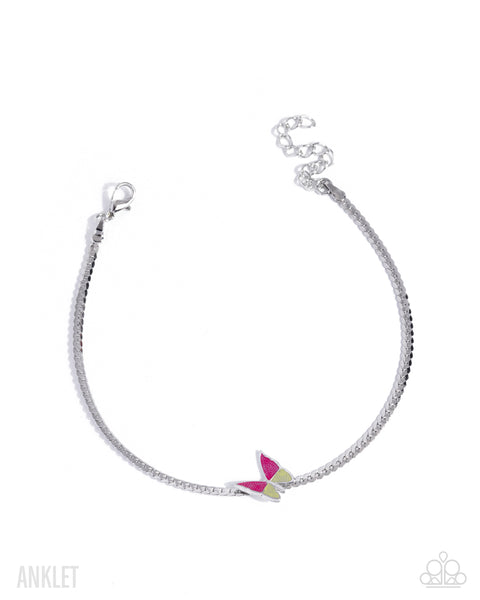 Fluttering along an abstract silver chain, a pink and Primrose-painted silver butterfly stands out for a whimsical pop of color. Features an adjustable clasp closure.
